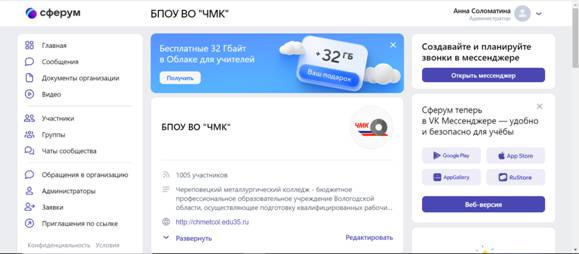 Информационно-коммуникационная образовательная платформа для образования «Сферум»