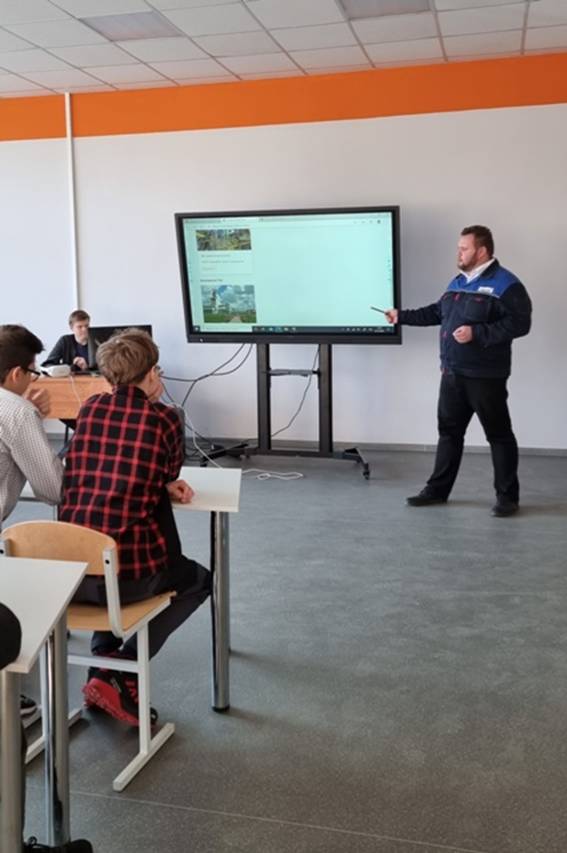 Начальник цеха производства сортового проката Тотладзе А.В. познакомил гостей с перспективами работы и карьерного роста в компании Северсталь, обратил внимание на важность подготовки высококвалифицированных кадров для развития предприятия.