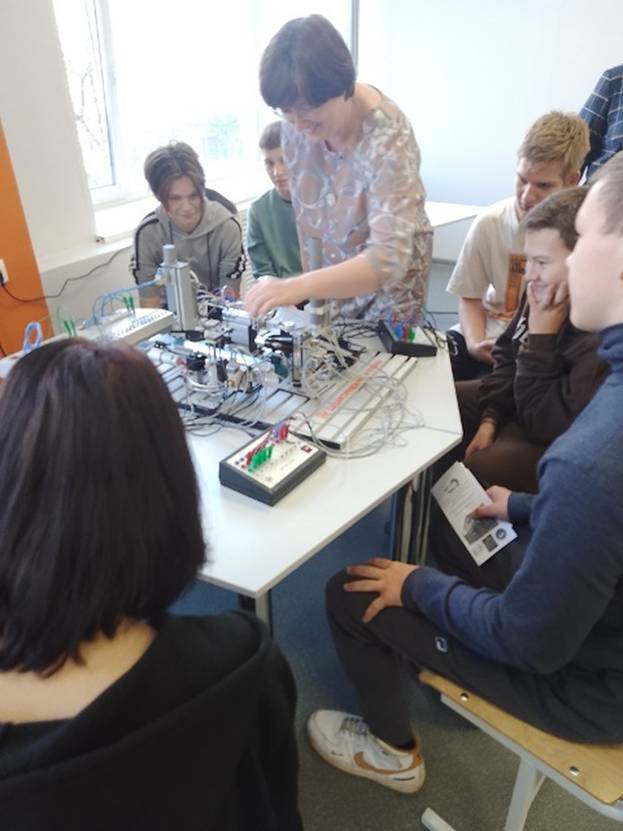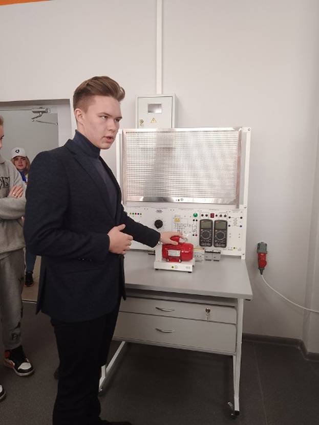 Далее собравшимся абитуриентам были предложены профессиональные пробы, посещение экскурсии в музее колледжа, проведение тестирования по профессиональному самоопределению. Преподавателями колледжа были проведены презентации всех специальностей и профессий, вошедших в федеральный проект Профессионалитет: «Техническая эксплуатация и обслуживание электрического и электромеханического оборудования (по отраслям)», «Оснащение средствами автоматизации технологических процессов и производств (по отраслям)», «Обработка металлов давлением»,«Коксохимическое производство», «Металлургия черных металлов», «Монтаж, технические обслуживание и ремонт промышленного оборудования» (по отраслям), «Технология машиностроения», «Сварщик ручной и частично механизированной сварки (наплавки)». Специалисты ПАО «Северсталь» провели мастер-класс по практическому использованию VR-тренажеров (прокатное производство); абитуриенты в режиме реального времени на стендах электромонтажной лаборатории смогли произвести подключение электросхем с последующим их вводом в эксплуатацию, провести опыты с гидравлическим приводом, познакомиться с работой 3-D принтера и сканера, станков с ЧПУ; увидеть, как организована учебная практика в слесарной и сварочной мастерских колледжа.