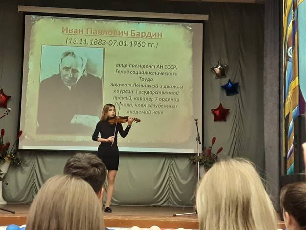 Иван Павлович Бардин очень любил классическую музыку. Наше мероприятие украсило выступление студентки 3 курса училища искусств Дубенко Валерии с творческим номером «Song from a secret garden».