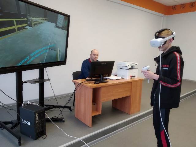 Менеджер по технологии С.Н. Амосов и мастер по технологии и качеству М.С. Середнев познакомили студентов специальности 22.02.01 с работой на новых виртуальных тренажерах, приобретенных для ФП Профессионалитет, в рамках практических занятий по ПМ.01 «Ведение технологического процесса производства черных металлов (чугуна, стали и ферросплавов)».