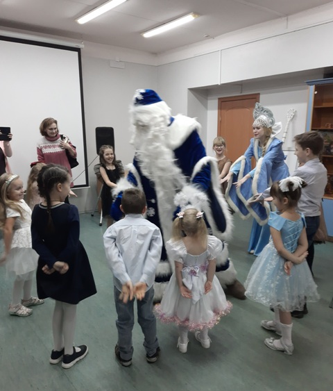 Участников праздника развлекали Дед Мороз и Снегурочка. Веселые конкурсы, нарядная ёлка и праздничный хоровод увлекли юных участников праздника, а чаепитие со сладостями стало его достойным завершением.