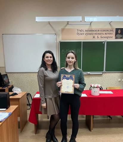 В заключительном этапе Александра показала достойные знания в области экономики и была награждена сертификатом за участие в городской олимпиаде.