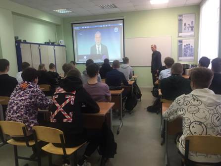 Студенты прослушали обращение генерального директора Госкорпорации «Роскосмос» Юрия Ивановича Борисова. Юрий Иванович подчеркнул, что у молодого поколения огромное количество возможностей для реализации себя в космической отрасли.