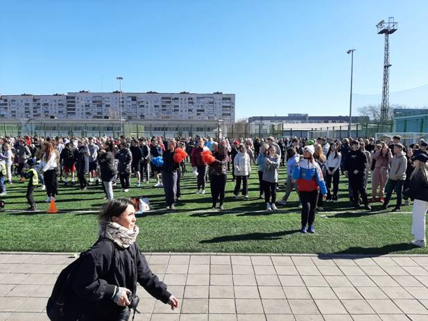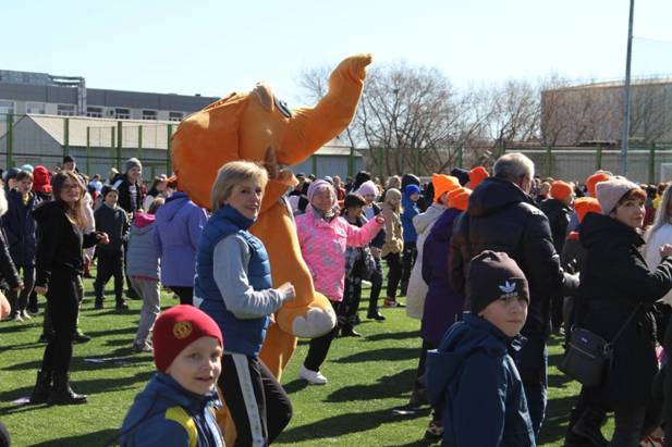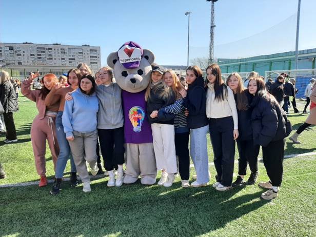 На искусственное футбольное поле стадиона "Металлург" приобщиться к акции и отметить День здоровья вышли студенты ПОО, детских садов с юными череповчанами, ветераны, школьники, а также различные организации города, подведомственные учреждения мэрии города, численностью 1200 человек.