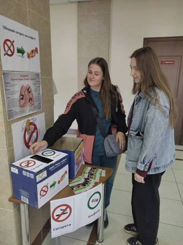 12 апреля в колледже совместно с профкомом студентов ГМПР прошла акция «Обменяй сигарету на конфету»!