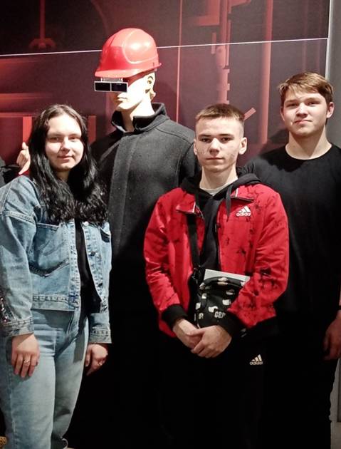 В ходе экскурсии студенты группы посетили все экспозиции музея, которые расположены на двух этажах. На первом этаже в зале древности поучаствовали в виртуальных археологических раскопках, в средневековье поторговали на рынке, а в залах советской эпохи – послушали по телефону директивы министров и воспоминания ветеранов труда. В залах, посвященных современным технологиям металлургии расположенных на втором этаже, ознакомились с технологическими цепочками металлургического производства, получили информацию о производстве и технологиях, ознакомились с образцами продукции ПАО «Северсталь» и тонкостях металлургических профессий. Нашли информацию и по своей профессии – Машинист крана.