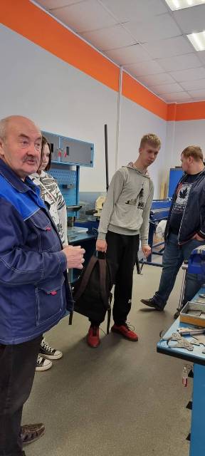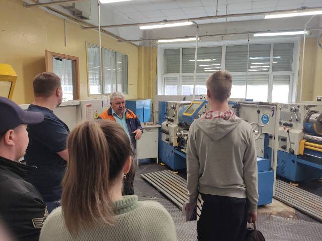 В токарной мастерской ребята знакомились с оборудованием под руководством А.В. Матвеева.