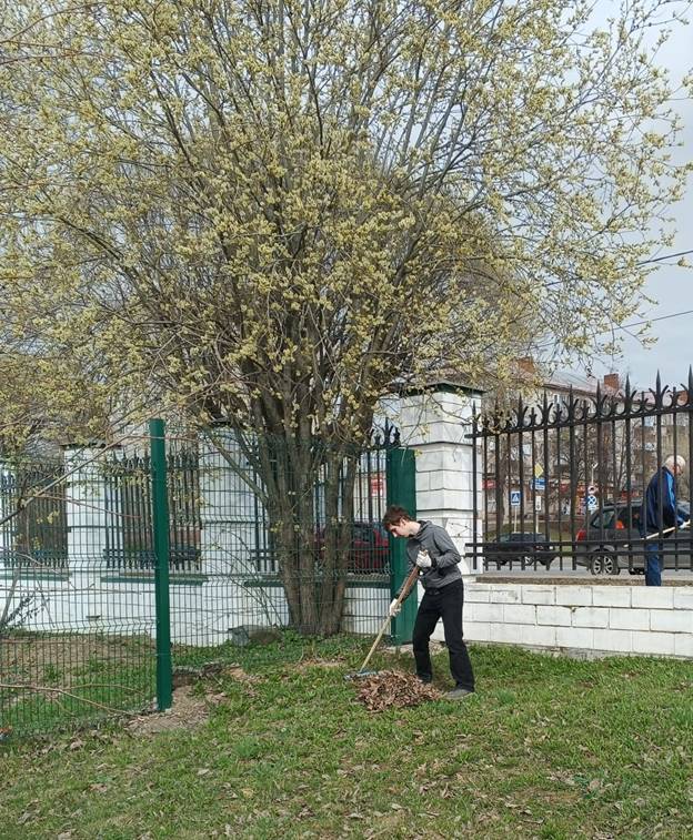 Ветераны и молодежь подмели площадки и дорожки, убрали прошлогоднюю листву, собрали мусор.