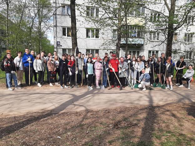 11 мая студенты групп 261 и 1ТМ с преподавателями физической культуры Светланой Александровной Пригородовой и Ириной Васильевной Смирновой по приглашению городской управы №13 приняли участие в городском субботнике.