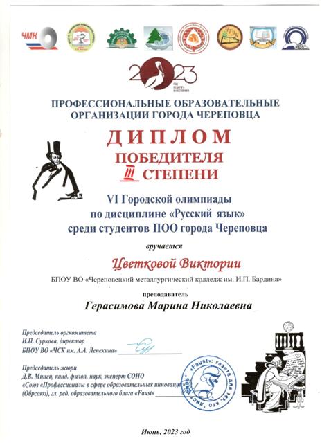 09 июня на базе БПОУ ВО "Череповецкий строительный колледж имени А.А. Лепехина" прошла VI Городская олимпиада по дисциплине "Русский язык" среди студентов профессиональных образовательных организаций города Череповца.