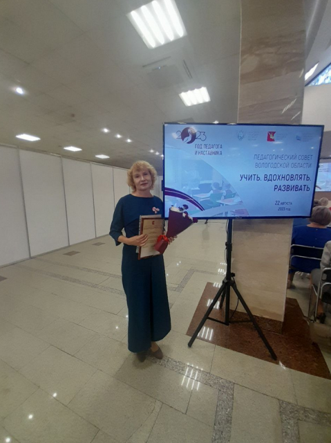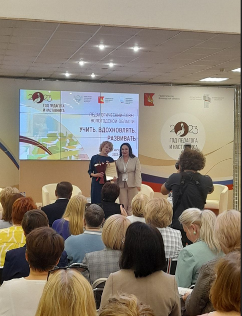 22 августа на областном педагогическом совете, посвящённом Году педагога и наставника, Благодарность Департамента образования Вологодской области получила преподаватель специальных дисциплин БПОУ ВО "ЧМК" Татьяна Борисовна Нечесова.