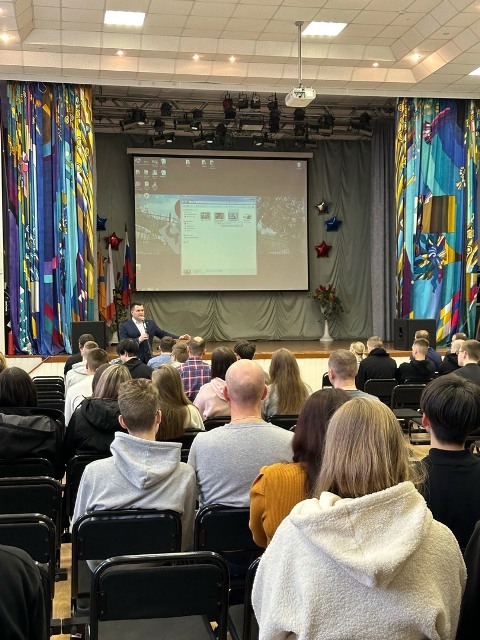 Директор нашего учебного заведения, Игорь Михайлович Люсин, поддержал слова Ларисы Валериевны и раскрыл детали о перспективах обучения. Он поделился информацией о ключевых партнёрах, таких как ПАО «Северсталь», и о возможностях целевых договоров, которые открывают новые горизонты для наших студентов.