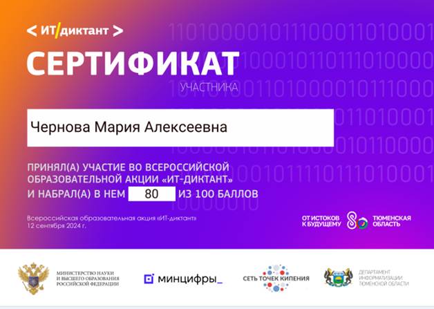 12 сентября студенты групп 1ИС-1, 1ИС-2 и 2КСК под руководством преподавателя Никулиной Елены Анатольевны приняли участие во Всероссийском диктанте по информационным технологиям «ИТ-диктант».