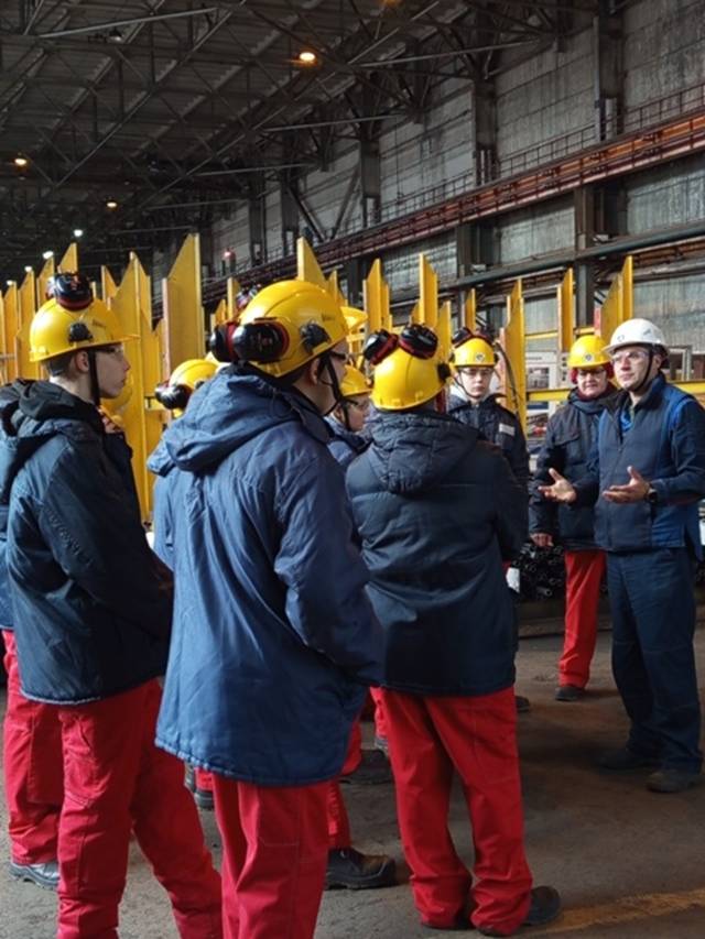 24-25 октября на площадке ПАО «Северсталь» ПСТП (производство сортового и трубопрофильного производства) студенты группы 2 курса, обучающиеся по профессии 22.01.03 Машинистами крана металлургического производства, вместе с преподавателями Л.Г. Чесноковой и С.В. Ермиловой прошли учебно-ознакомительную практику с целью закрепления и совершенствования теоретических знаний. Во время экскурсии студенты группы познакомились с работой и устройством мостового крана.