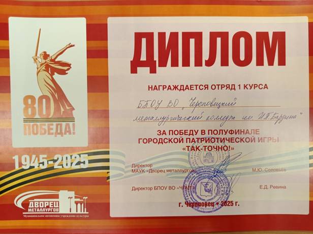 Данный проект реализуется второй год в рамках совместной работы профессиональных образовательных организаций города Череповца, основной задачей которого является сохранение исторической памяти и культурного наследия России.