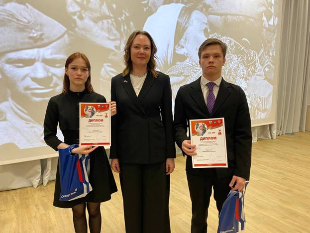 Поздравляем Анастасию и Кирилла с успешным участием в конкурсе. Благодарим Екатерину Николаевну Привалову, советника директора по воспитанию, и Марию Владимировну Куимову, педагога-организатора за привлечение студентов к участию в патриотических конкурсах.