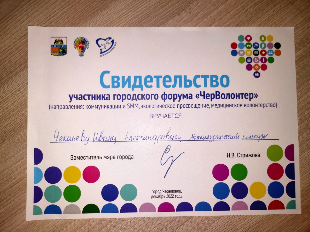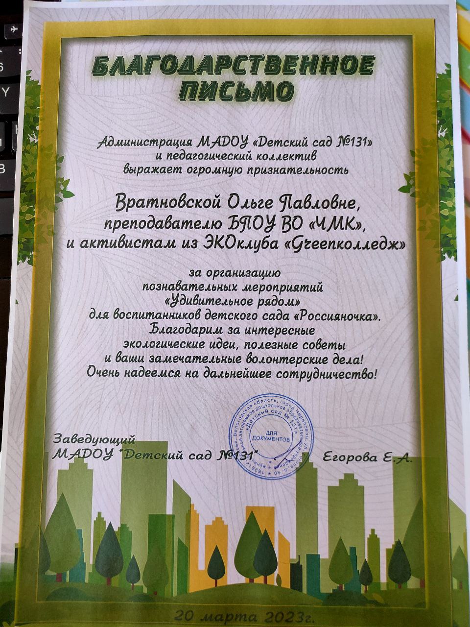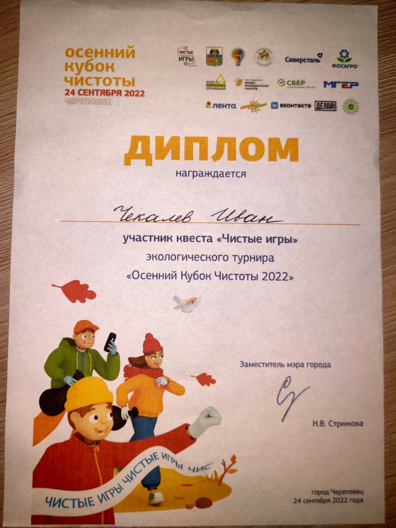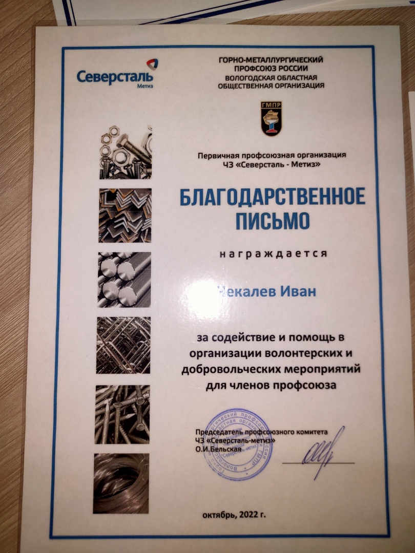 Благодарственное письмо Чекалеву И. Мы - разные, мы - равные