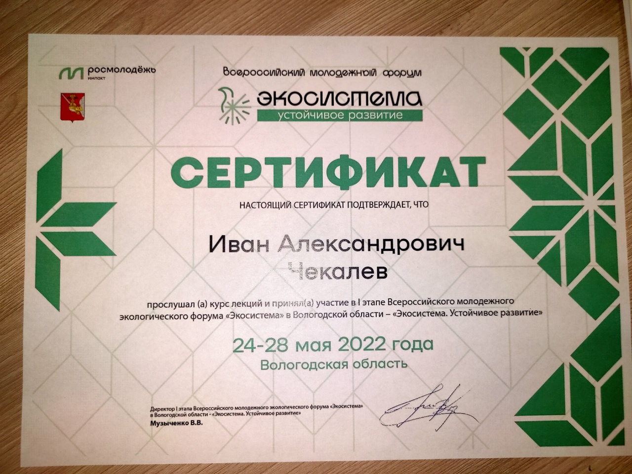 Благодарственное письмо Чекалеву И. Мир ОДИН на ВСЕХ